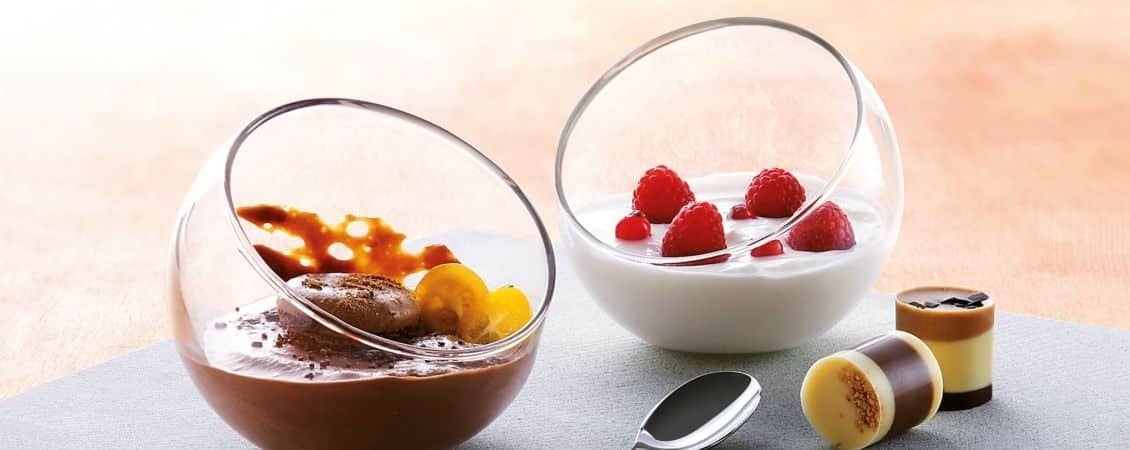 Professionele, hoogwaardige glazen met een modern, bolvormig design, ideaal voor het presenteren van kleine hapjes, desserts of aperitieven. Duurzaam, vaatwasmachinebestendig en stapelbaarheid, vaak gebruikt in de horeca.