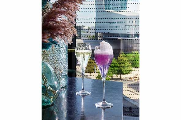 Symétrie is een nieuwe collectie bij Chef & Sommelier. Deze lijn, met een breed scala aan mogelijkheden, voldoet aan de behoeften van restaurateurs, mixologen en cateraars die op zoek zijn naar iets bijzonders en verfijnds. De collectie kenmerkt zich door de verticale lijnen die door de glazen lopen en een hypnotiserend optisch spel creëren. De collectie sluit perfect aan bij de trend van subtiele optische dimensies die wijnen en cocktails accentueren, zonder de aandacht af te leiden tijdens het proeven. De 21 cl-kop en de 58 cl-ballon stimuleren de creativiteit van mixologen, terwijl de 16 cl-flûte dankzij de kleine inhoud en het compacte formaat ideaal is voor bars en cateraars, met name voor staand drinken. De 55 cl, 45 cl en 31 cl wijnglazen, evenals de 21 cl-flûte, zullen ongetwijfeld een plekje vinden op de tafels van de meest trendy restaurants.