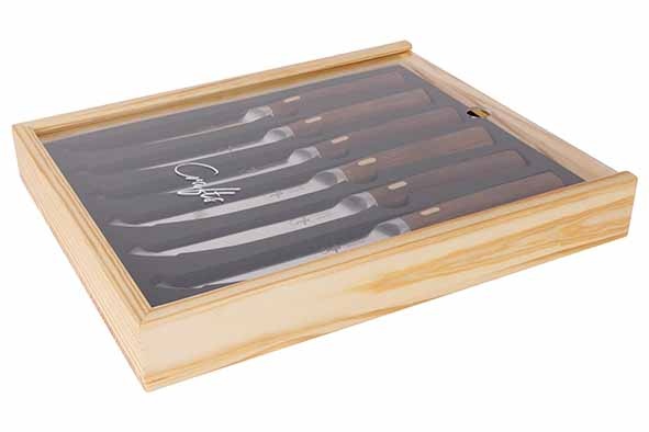 Couteaux & Co steakmes 12cm met walnoten handvat kist à 6 stuks