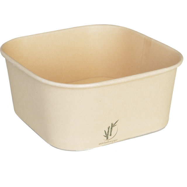 Depa Saladebak vierkant bamboe papier met PP deksel 1250ml pak à 25