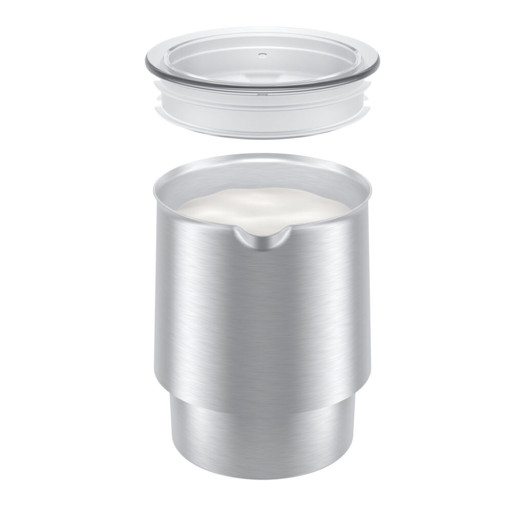 De heldere, strakke vorm, de doordachte look & feel, evenals de geselecteerde materialen van de schuimklopper, zorgen voor een bijzonder eenvoudig gebruik en een optimale hygiëne. Uitgerust met twee opzetstukken, bereid deze koude of warme melk, melkschuim en warme chocomelk via één enkele knop.