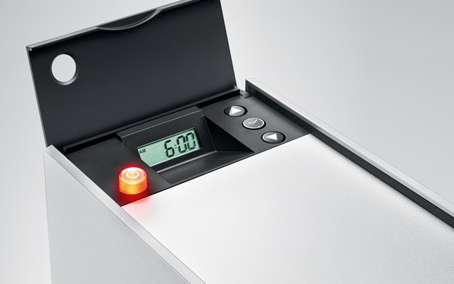 | Warme kopjes op het juiste momentMet de programmeerbare in- en uitschakeltijd bewijst de moderne kopjeswarmer diens eco-intelligentie. De kopjeswarmer kan uitermate eenvoudig aan uw wensen worden aangepast, zodat de kopjes precies op het juiste tijdstip voorverwarmd worden waarop u van uw ochtendkoffie wilt genieten. Als geen uitschakeltijd wordt geprogrammeerd, wordt het intelligente apparaat na 12 uur automatisch uitgeschakeld. |  |  |