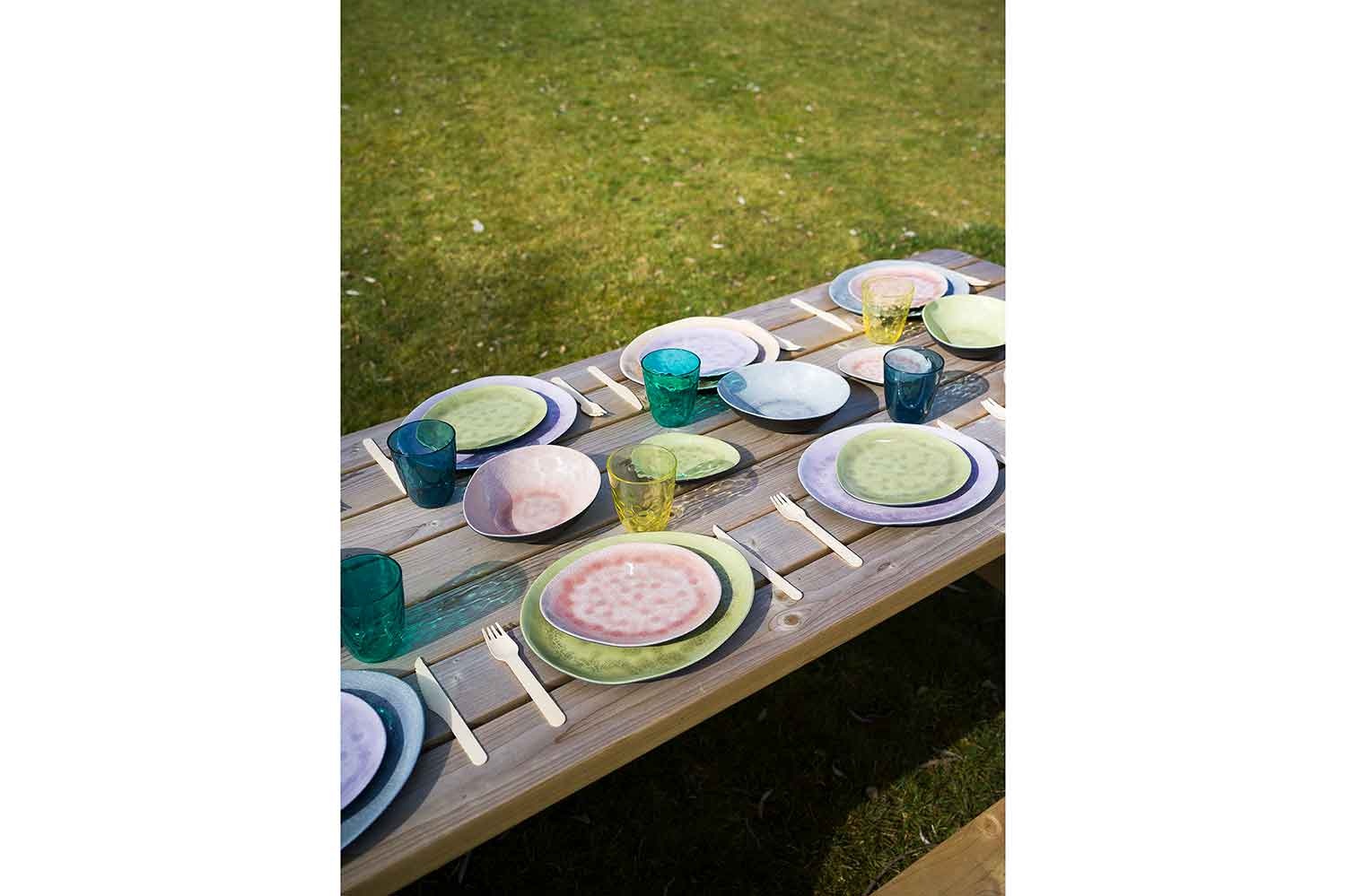 Festival reeks: dezelfde mooie kleuren en vormen als het originele servies, maar lichter, handiger, en extra kras- en breuk vast. Ideaal voor echte Streetfood Festivals of om op reis mee te nemen dus!